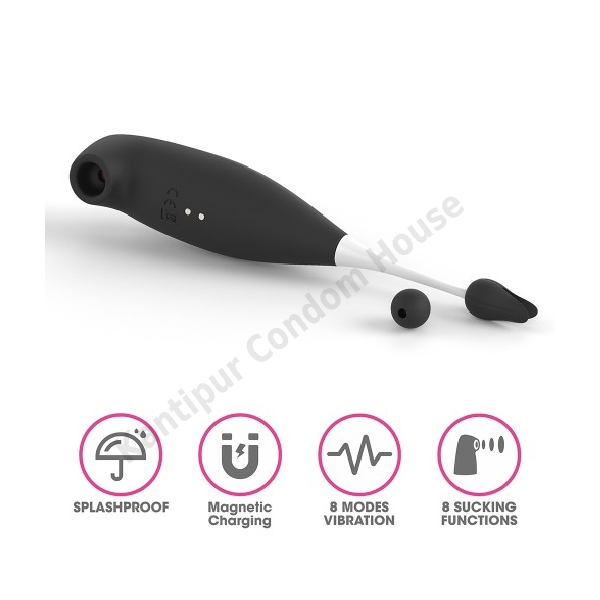 It Comes With two parts one for the clit and the other one for the nipple. Both suck those sweet spots as to give you hair-raising sensations. The needle like part send a subtle buzz as it rests against your clit or nipple. This tickling sensation is enough to make your body tremble with joy. It includes 2 silicone cute caps for maximum comfort.You can choose from 8 types of vibrations and Sucking modes. With this tool, you are in full control of your sexual experience.